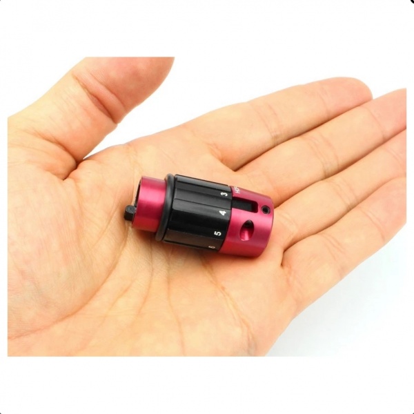 Prelucrare superioară pe mașini CNC de precizie. Combinație modernă de culori cu marcaje laser. Levier pliabil metalic pentru presiunea ideală a bucșei Hop-Up. Inel rotativ cu 10 poziții pentru controlul continuu al presiunii (aproape 360°). Suprafață cu striuri antiderapante pe inel. Fără rotație spontană a inelului și eliberare a presiunii. Pachetul include, de asemenea, o rolă de 3 mm, blocare de țeavă metalică și un inel de siguranță. Garantie de 2 ani și opțiunea de a achiziționa piese individuale.